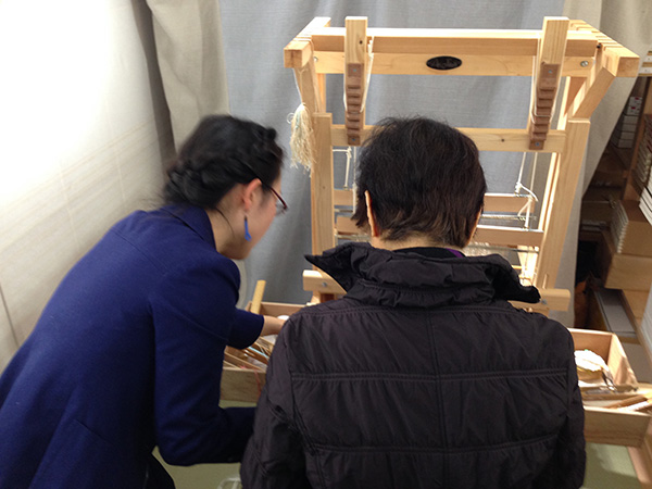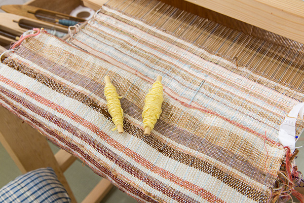 TOBICHIに運び込まれたコンパクトな機織り機には、