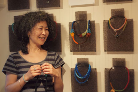 | ── | ということは、shinoさん、 ビーズのチョーカーの作家としての 日本でのデビューは、40代になってから。 |