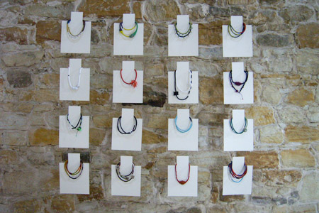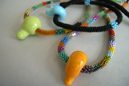 | shino | ガラスのインスタレーションは 1998年に北ボヘミア美術館でやってます。 チョーカーはこの夏に、プラハで開きました。 個展ではなくて、二人展や三人展ですが、 もう3回目になるんですよ。 |