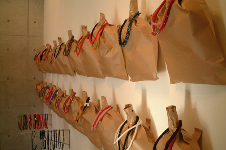 | shino | そうしたら面白い引き合わせで、 大橋歩さんのイオグラフィックギャラリーで 小倉充子さんの個展があったとき、 引退していた井上さんが手伝いをなさったんですね。 その時に井上さんはもとより、 ギャラリー介時代のお客様で わたしのチョーカーをつけてきてくれた方が いらっしゃって‥‥ それを見て大橋歩さんが興味をもってくださった。 そこで井上さんが私を紹介してくれて。 |