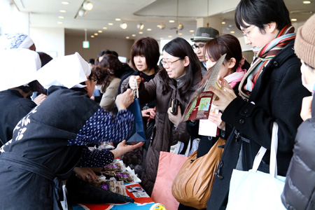 気仙沼のおいしいものをたくさんそろえた、 物販コーナーも予定しています。 「気仙沼の地元のお客さんも買いにくるような、 魅力的なラインナップ(気仙沼のほぼ日:談)」 になるそうですよ。 朝めしといっしょに、お買いものもおたのしみに。 おいしいおみやげ、たっぷり買ってってください!
