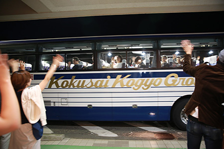 ▲公演後、ツアーのお客様を全力で見送るスタッフたち