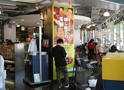 おぉ! 黄緑色の大きなポスターとその下に並ぶ