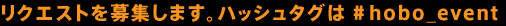 文末にハッシュタグ#hobo_eventをつけていただければ