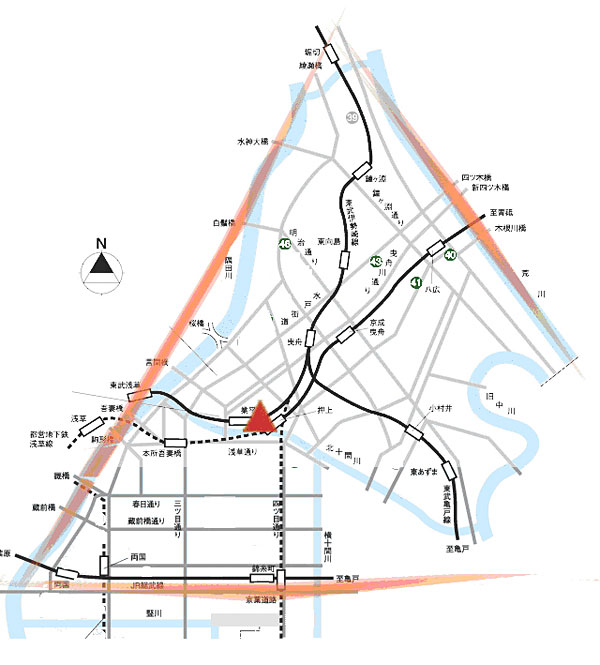 浅草、向島など伝統ある下町に囲まれ、