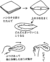 ハンカチを使って、痛くないプラ・ジャを作りましょう。