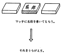 マッチ箱のひとつに、柏手の名前を書いてもらって、