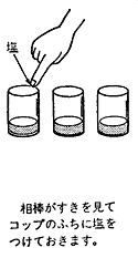 (サクラの人が、グラスのふちに塩をつけておく。