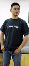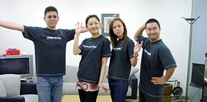 お揃いの黒いTシャツを着て、うれしそうにポーズをとる