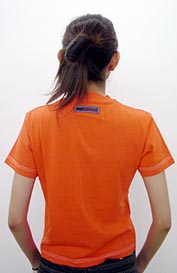きれいなオレンジ色のTシャツのお客さんが、