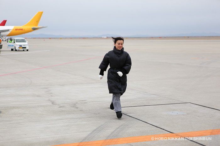 その広い飛行場を、せわしなく駆ける日通の岩崎さん。