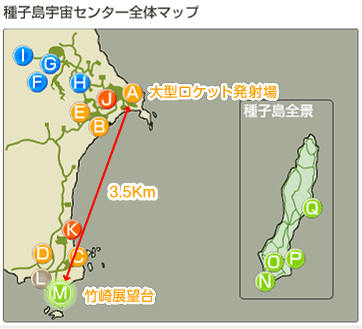 | 日本最大のロケット発射場である 種子島宇宙センターの、大型ロケット発射場から。 打ち上げ当日は、 周囲3キロ圏内が立入禁止となるため、 生中継は発射地点から 約3.5km離れた「竹崎展望台」から行います。 はたして電波は充分なのか、電源は‥‥ いまはただ、祈るほかありません。 ![]() |
