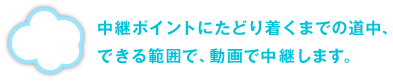 | とはいえ、動画中継をするためには さまざまな条件を満たす必要があるのも事実。 そこで、中継ポイントにたどりつくまでの 大半の時間帯は、 我々がもっとも得意とする「テキスト中継」で レポートをしていきます。 |