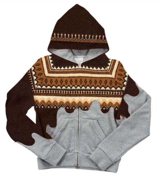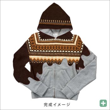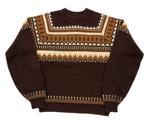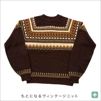 フェアアイル柄ですが、全体の色合いが いかにもヴィンテージって感じです。 胸のところの色のグラデーションがとても奇麗で、 裾にも、胸の模様に負けないボリュームの 模様が入っているので、パーカには最適だと思います。