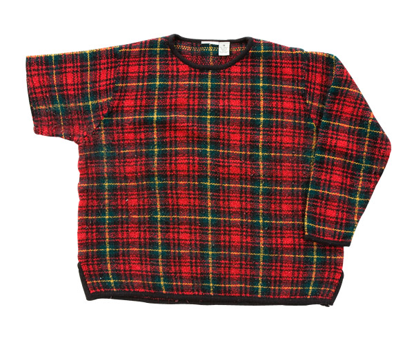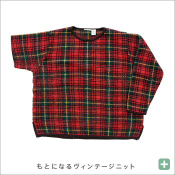 ヴィンテージセーターの中でも特に希少な 赤のタータンチェック柄です。 質感がとても珍しく、 パイル地のようなブークレの糸が使用されています。 裾口がリブ編みではなく パイピング仕様になっているところもポイントです。