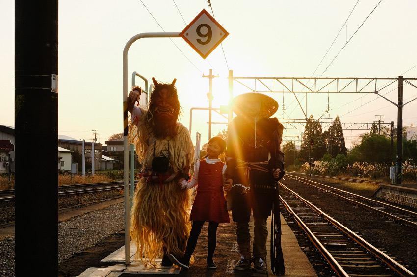 コハのパパがマタギの格好、池ちゃんはなまはげのお面で