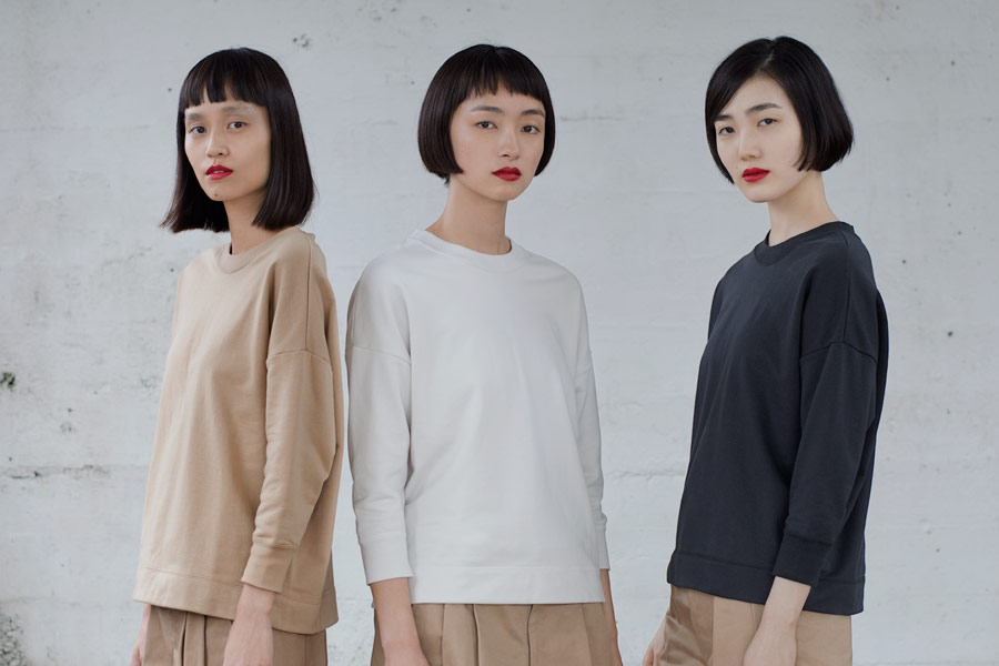 肩や身幅はゆったり、袖丈は短めというバランスに。