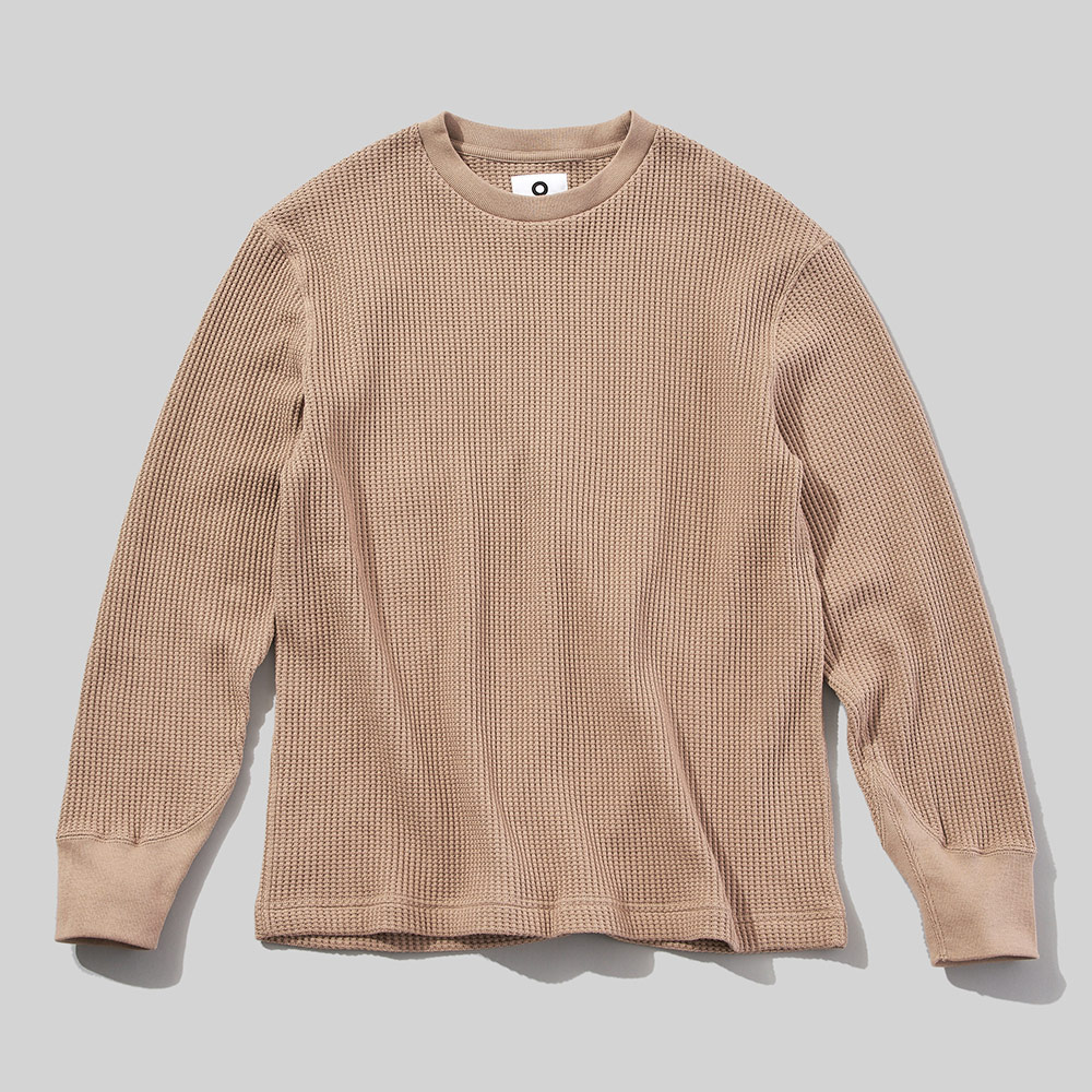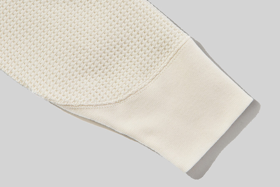 大きめでしっかりしたワッフル編みの凹凸感は、
