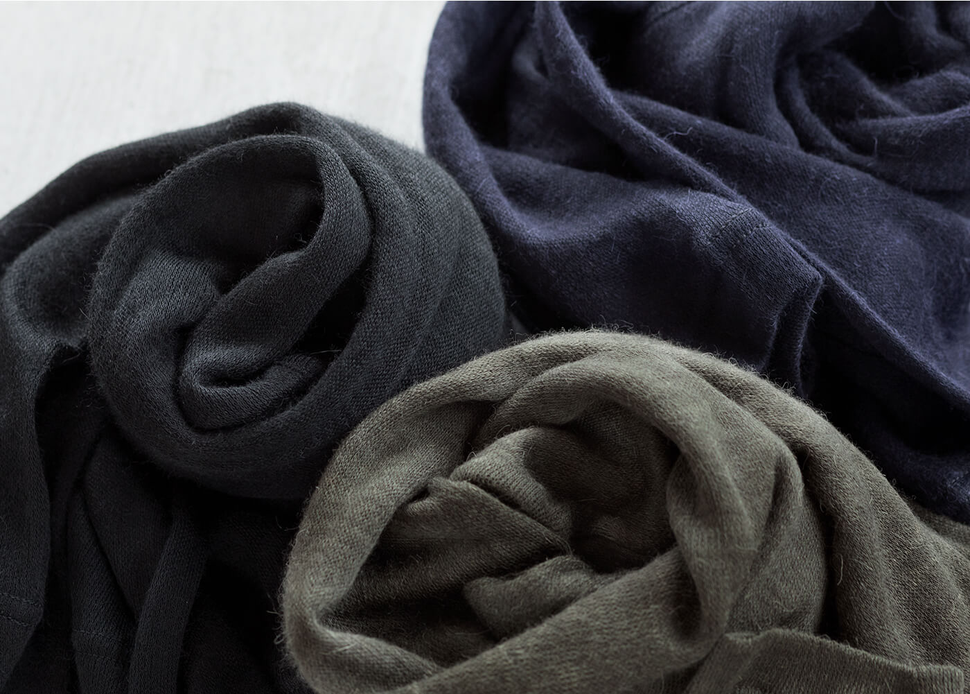 秋冬はカシミヤやアルパカなどの獣毛素材を使った、