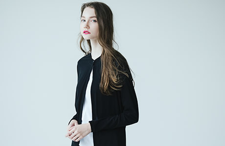 シンプルでプレーン、でも広い身幅と短い丈が個性的。