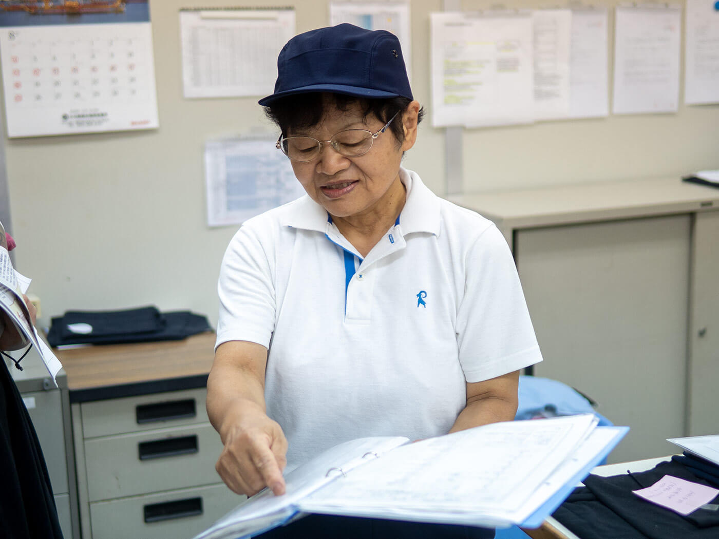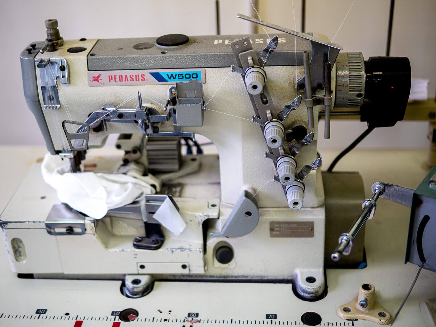 1着ずつ、各パーツごとに使うミシンがちがうので、
