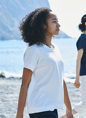 ちょうどいい襟ぐりの開きぐあいを追求しました。