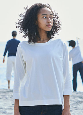 ちょうどいい襟ぐりの開きぐあいをキープしています。