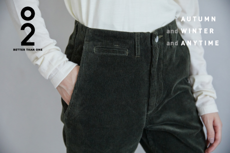 春夏に好評だった〈O2〉とのダブルネームチノにくわえ、