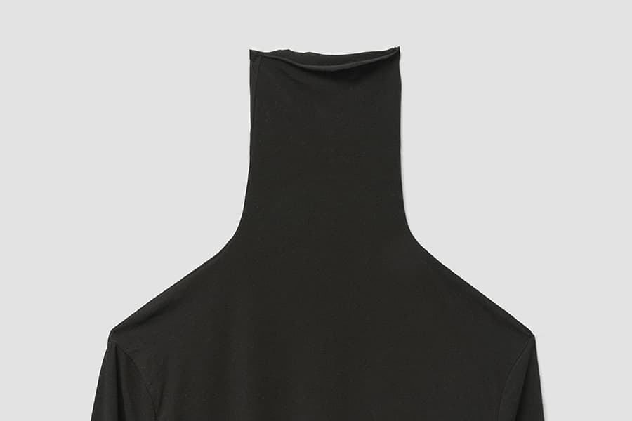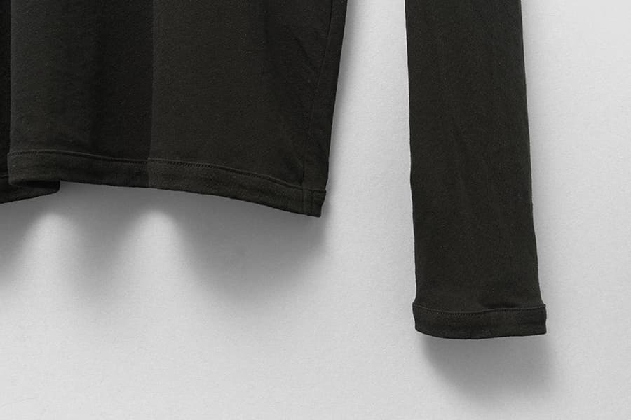 「ハイブリッドラマ」を使ったハイネックのカットソーが