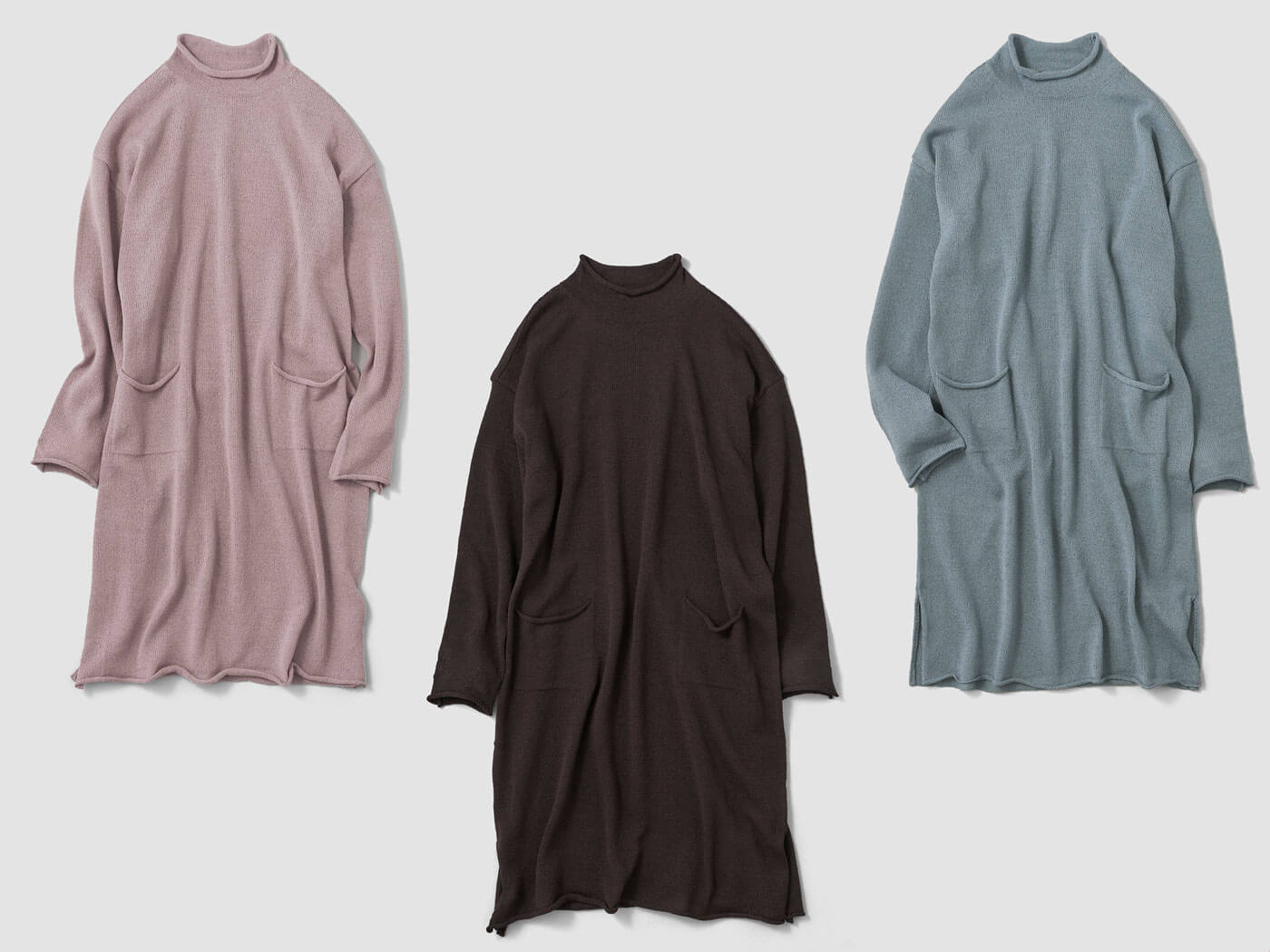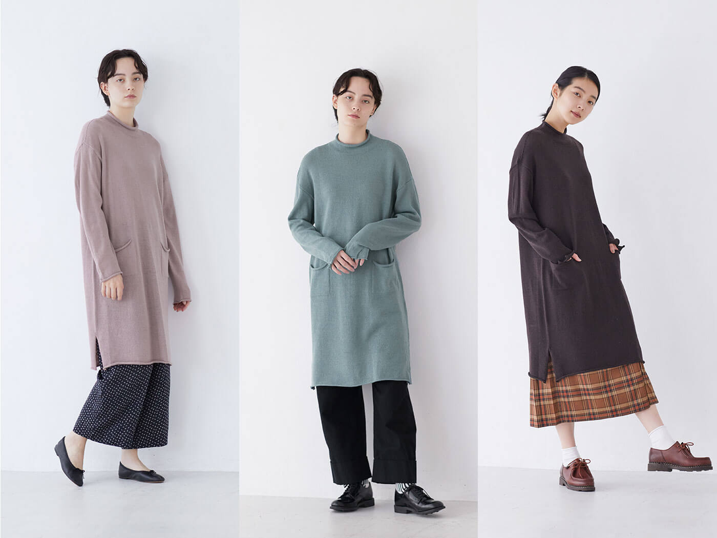 手仕事の雰囲気をのこしたレディスのニットワンピースと