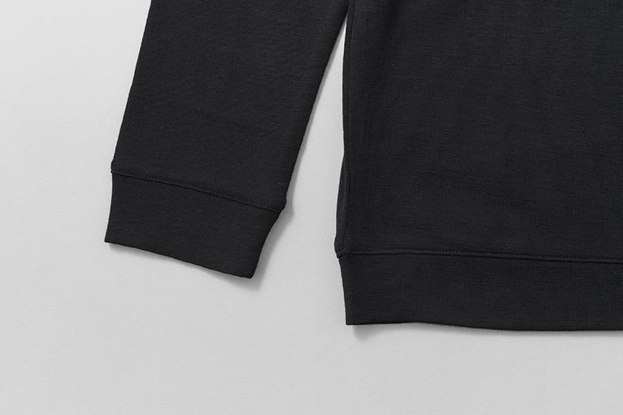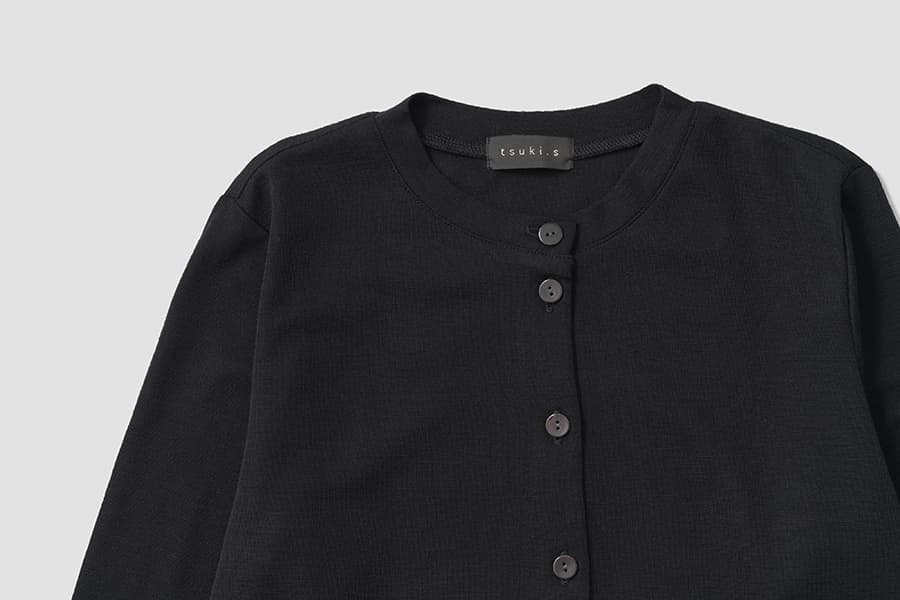襟のリブは細くして女性らしく上品に。