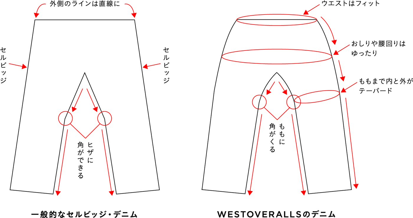 ウエストオーバーオールズではあえてセルビッジを使わず、