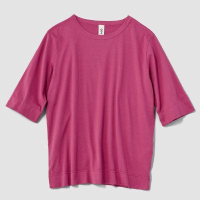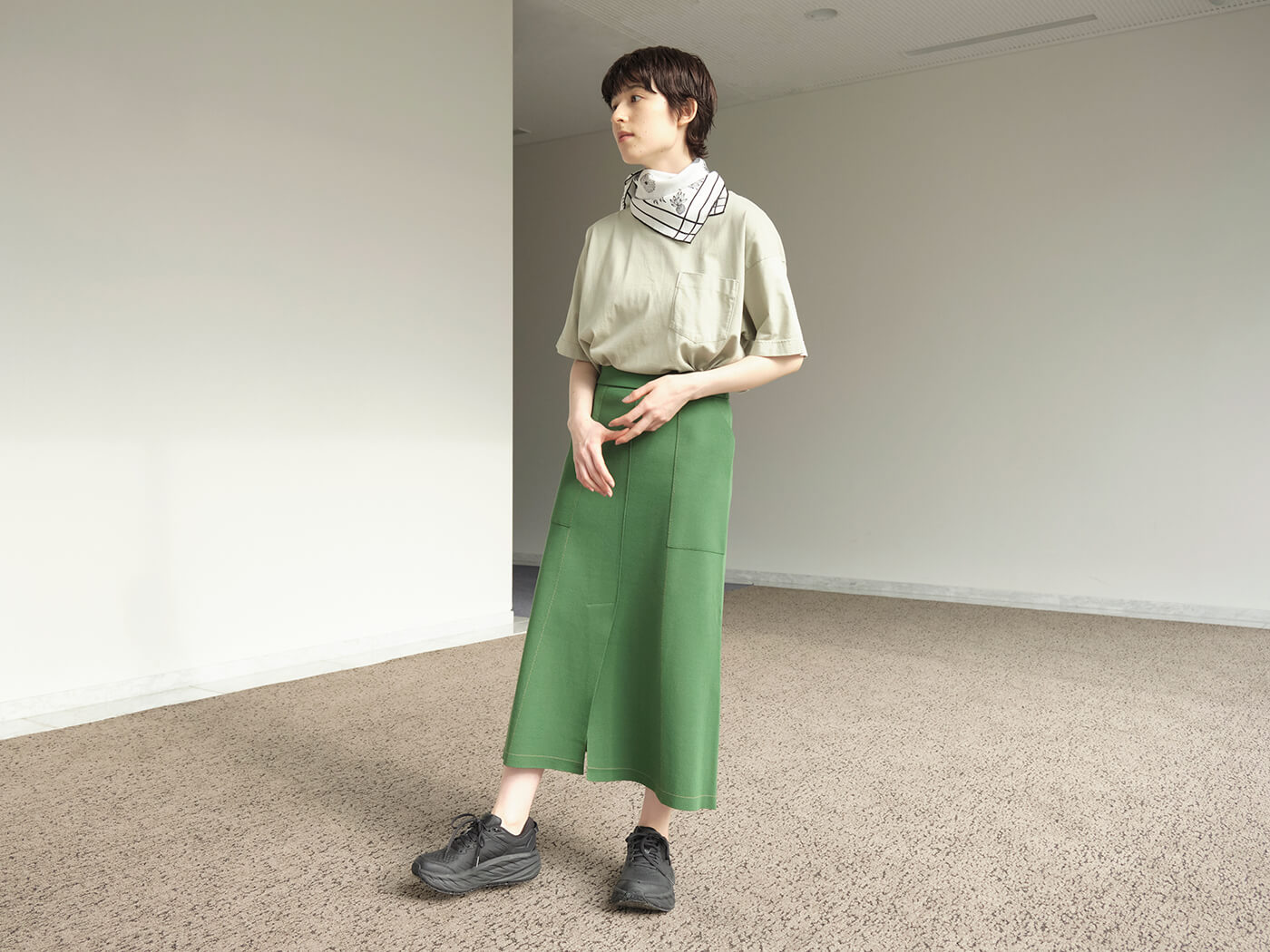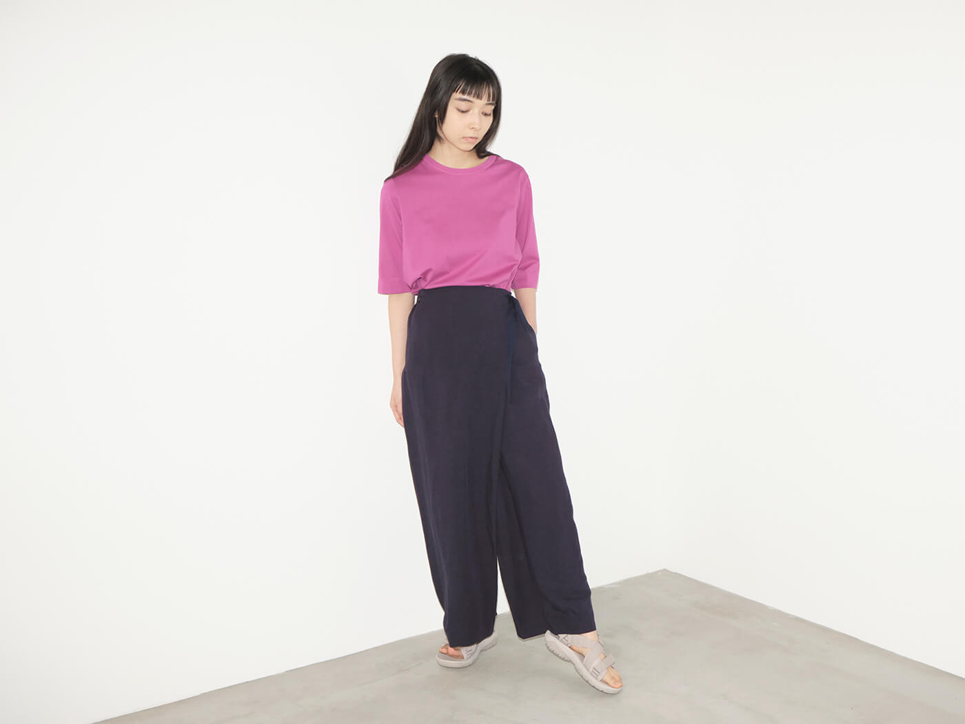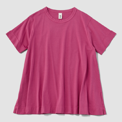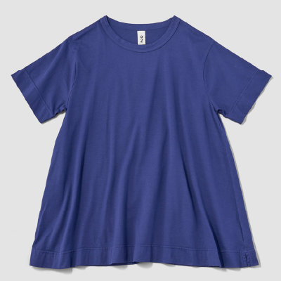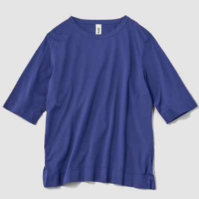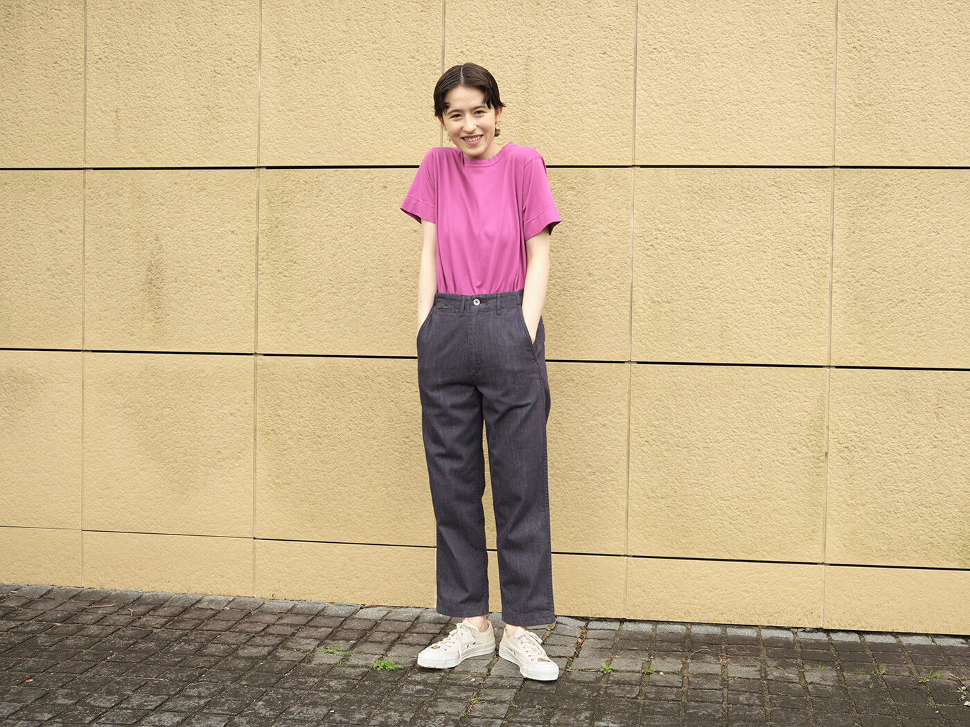 「鮮やかなブルーのTシャツは、ボーイッシュなイメージになりやすいので、