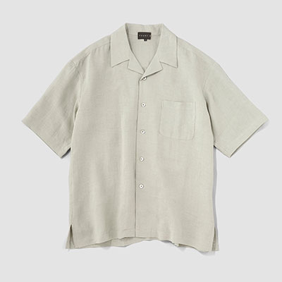 tsuki.s メンズ リネン オープンカラーシャツ