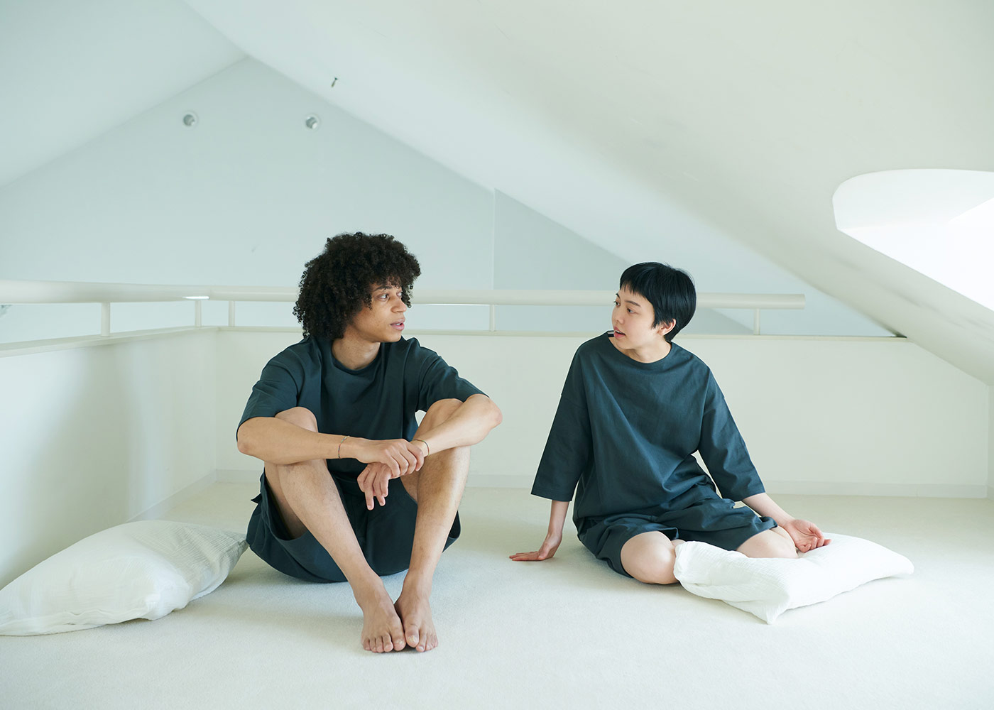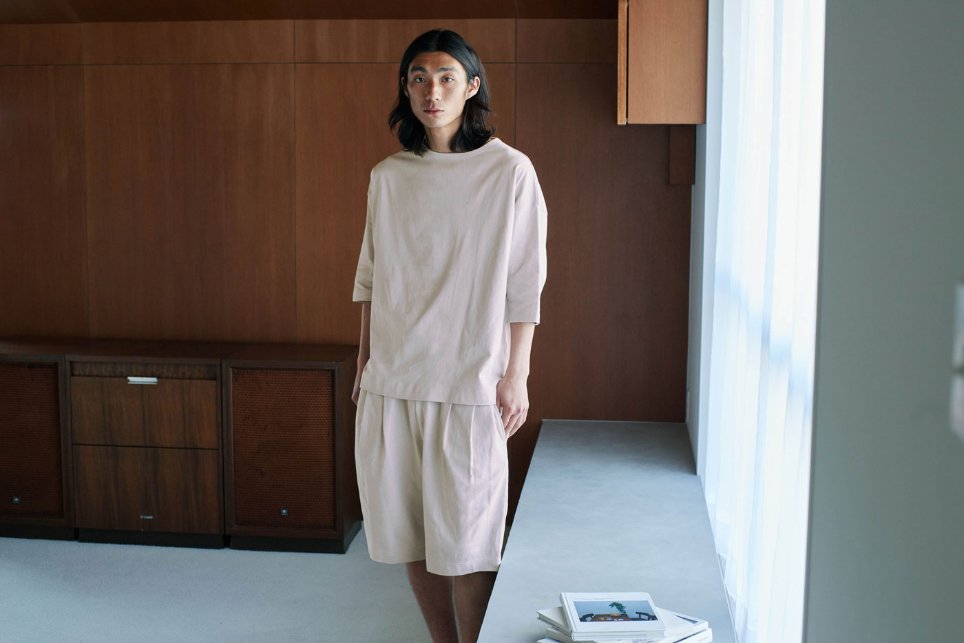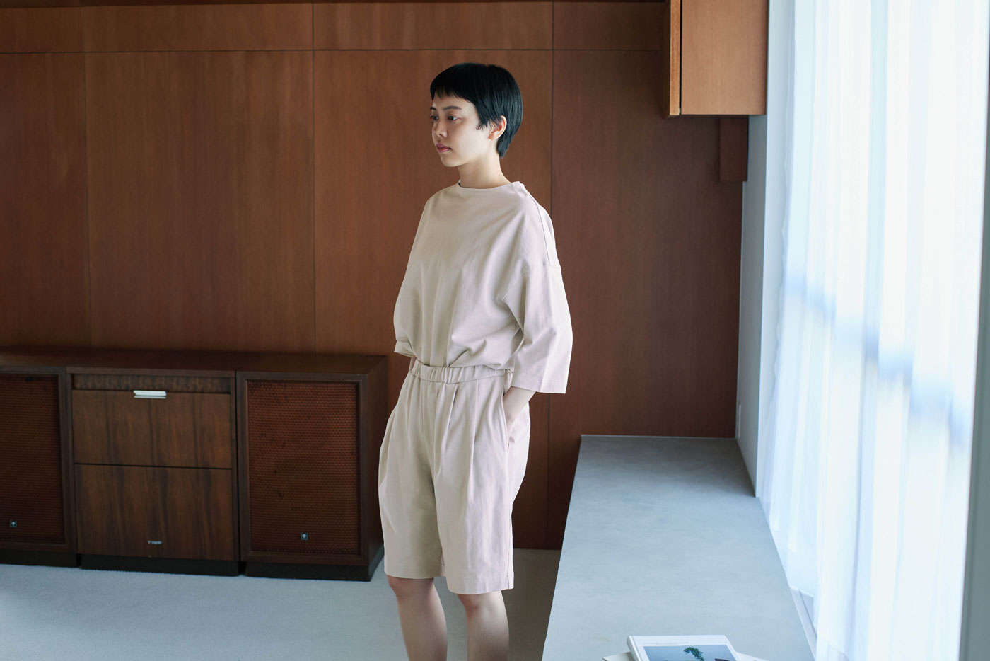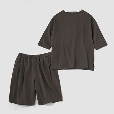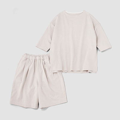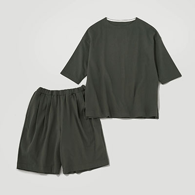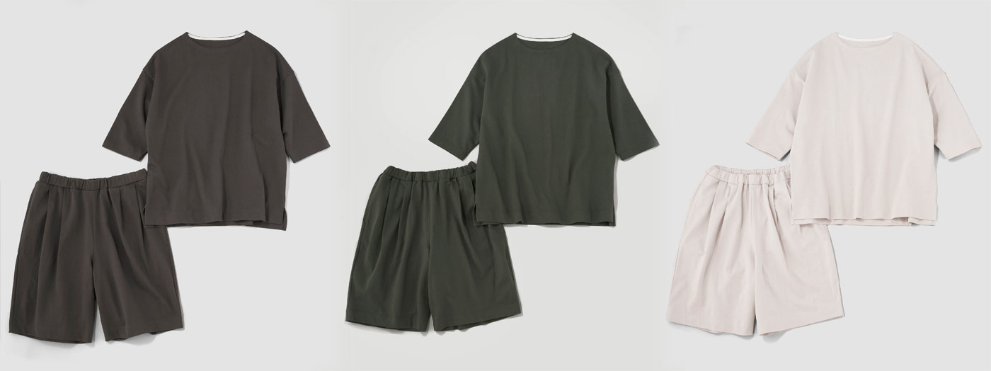 2020年、「雑に着ちゃえるTシャツ」を引っさげて登場した〈zA2〉シリーズ。今回も、生地屋さんで廃棄予定だった生地を引き取らせてもらいました。つくったのは、zA2(ザツ)に着られて、そのまま外にも出られるプルオーバーとハーフパンツの上下セットです。