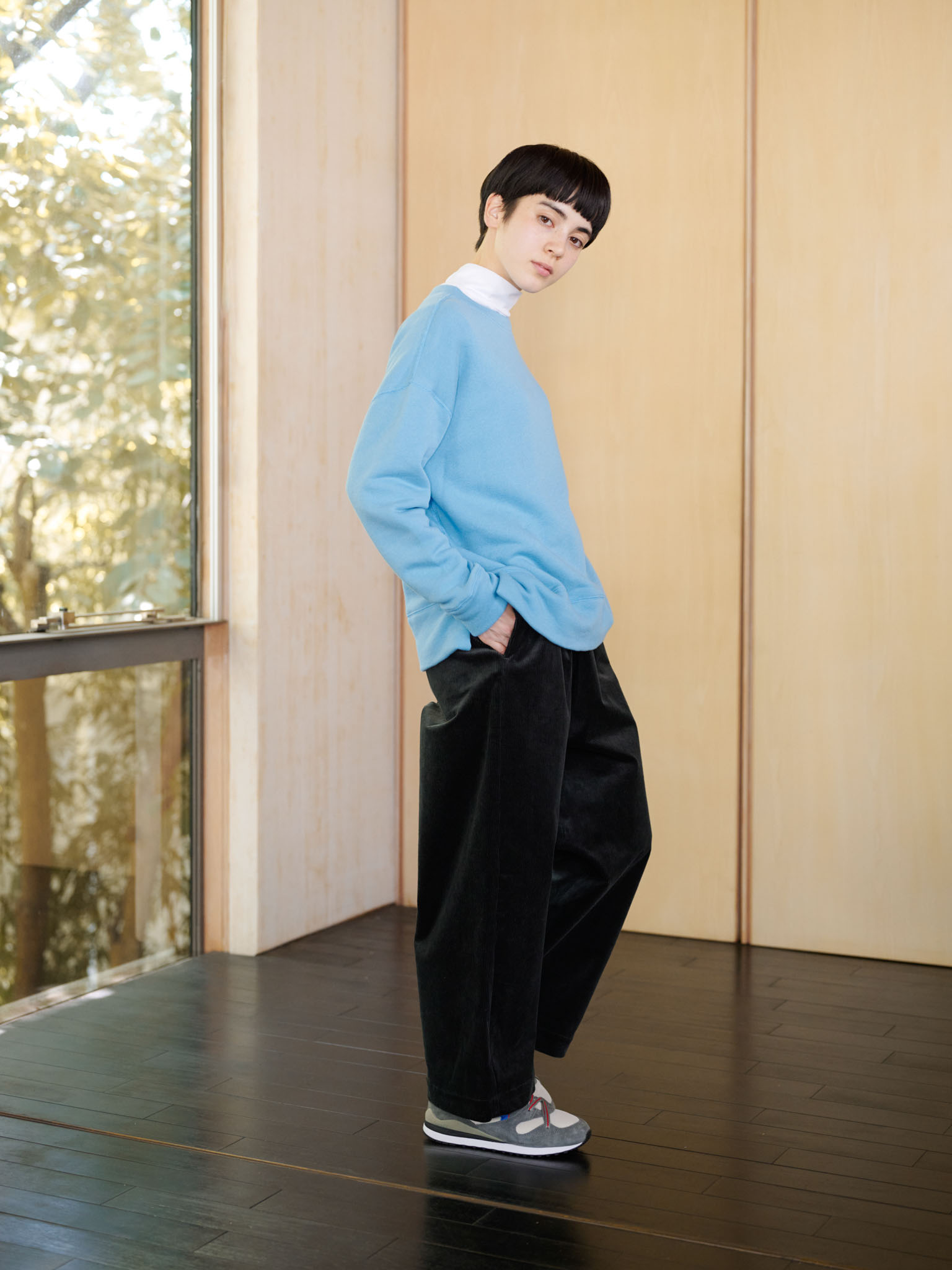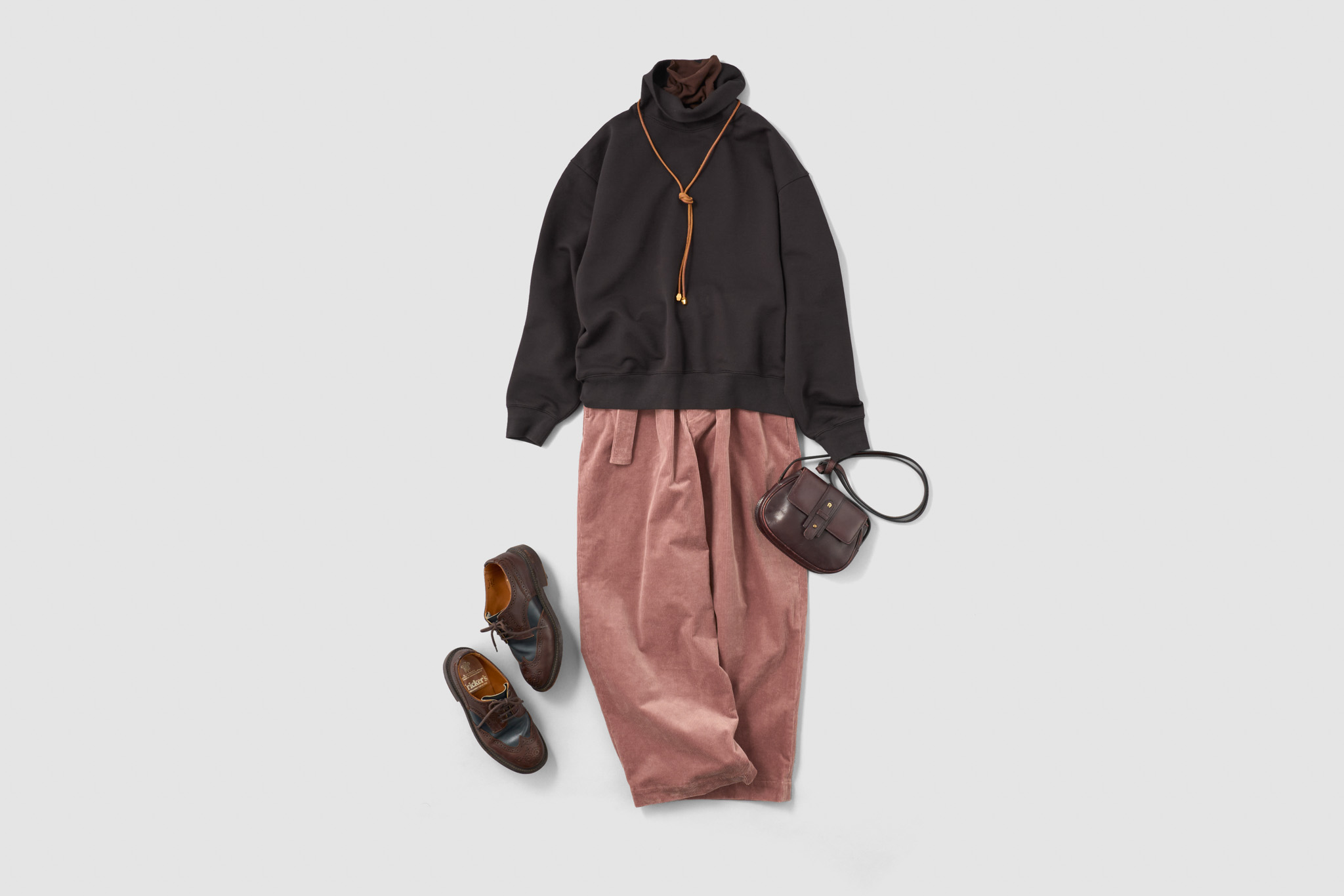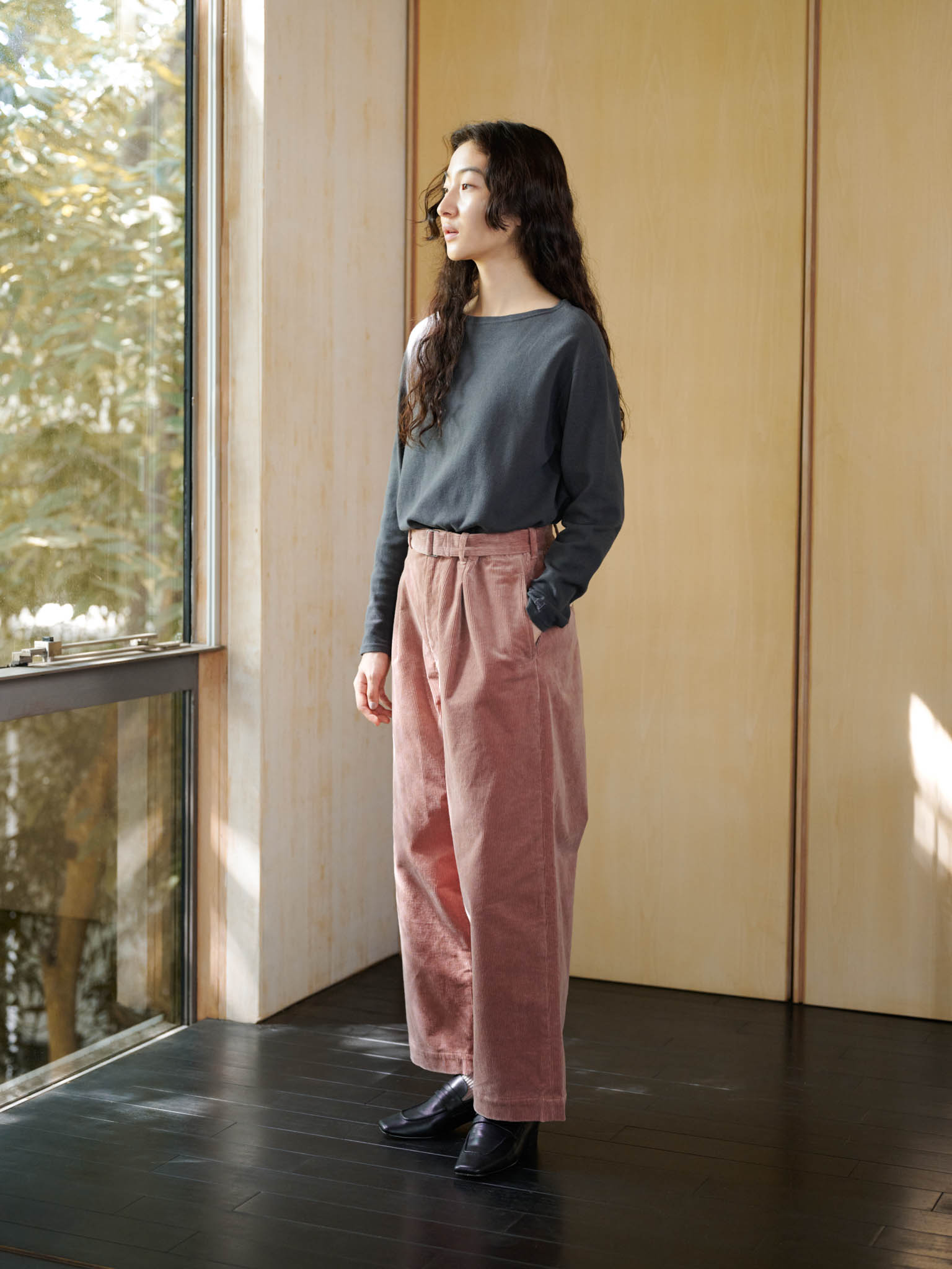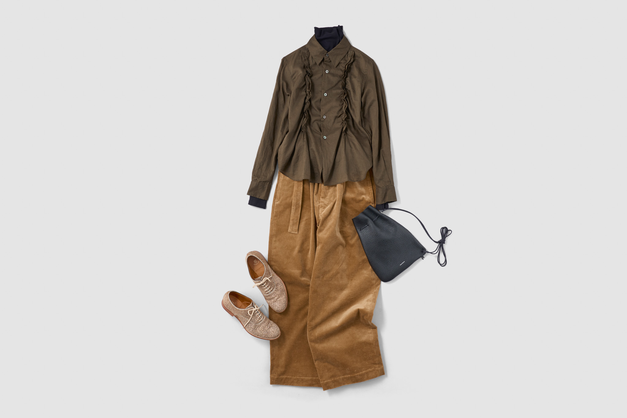 ハリのある上質なコーデュロイを使ったワイドパンツは、