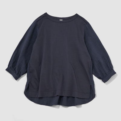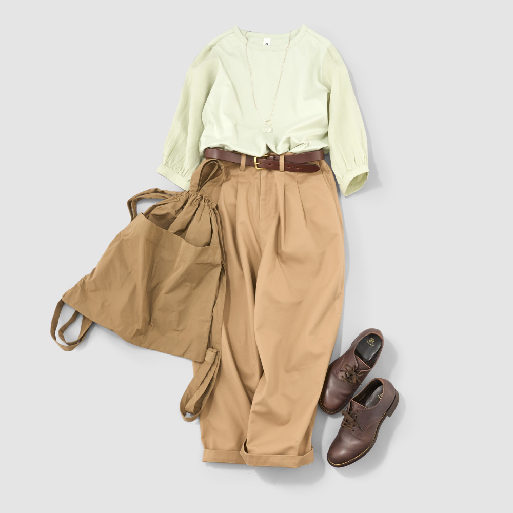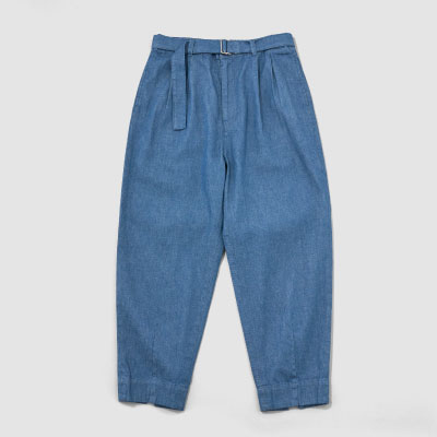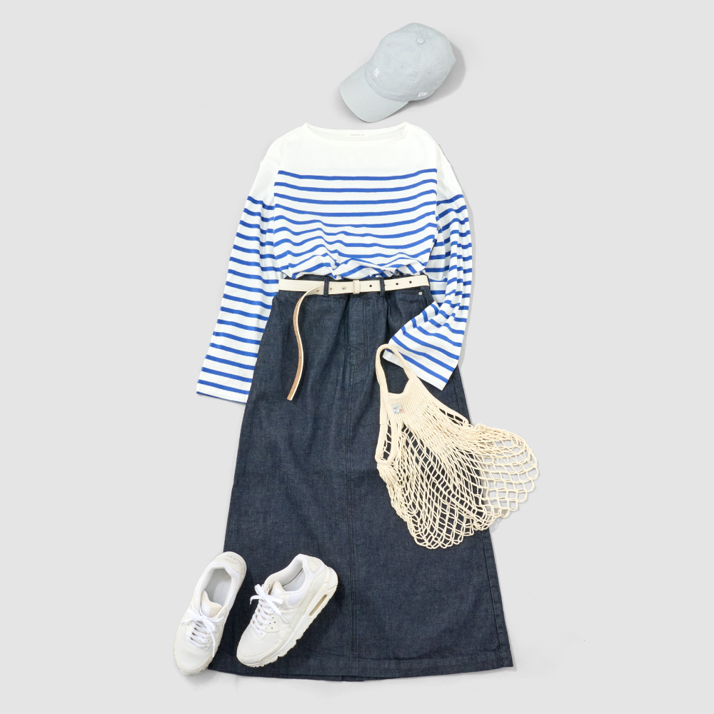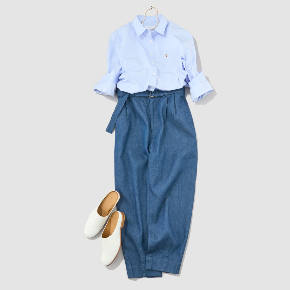 - フレンチブルーのデニムスキッパーパンツを主役に
