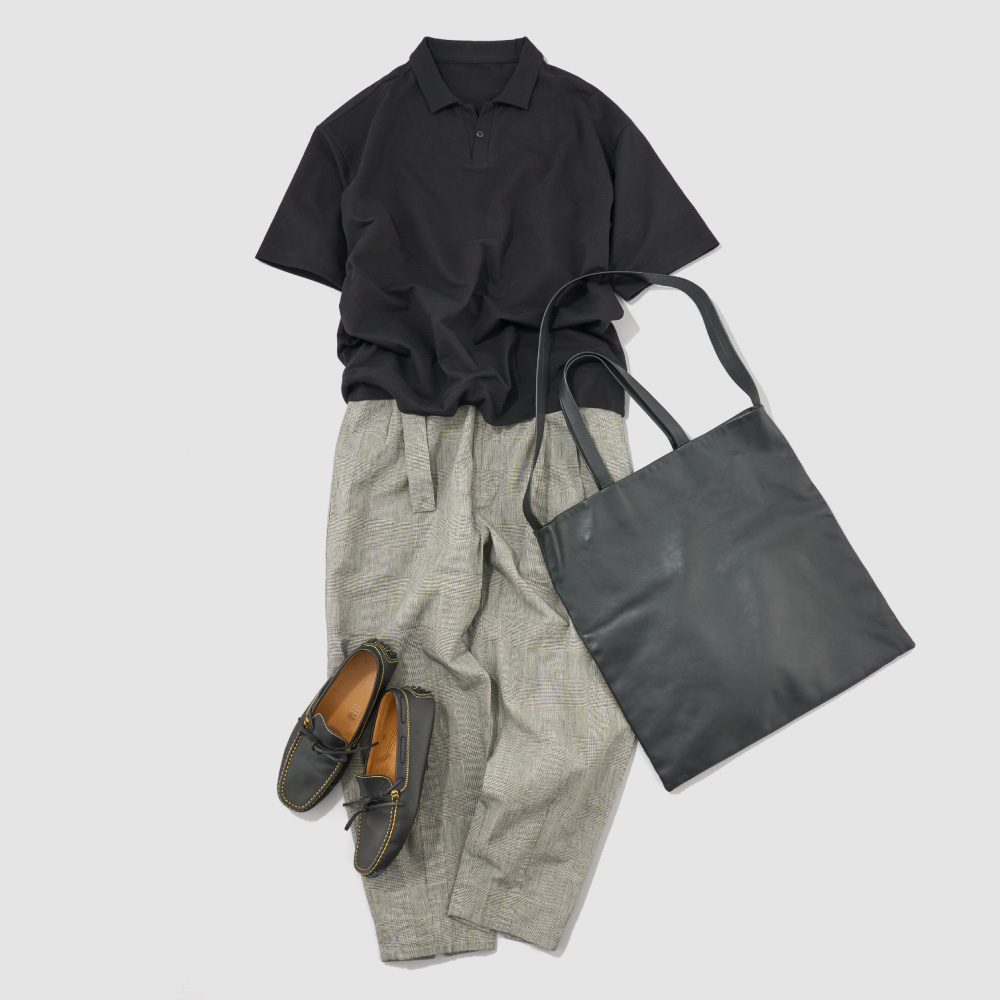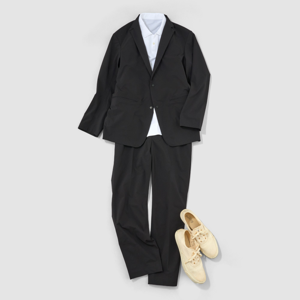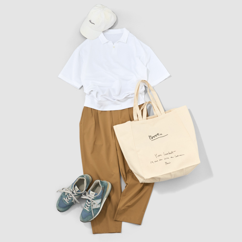 - 白のポロシャツをセットアップのインナーに抜てき。