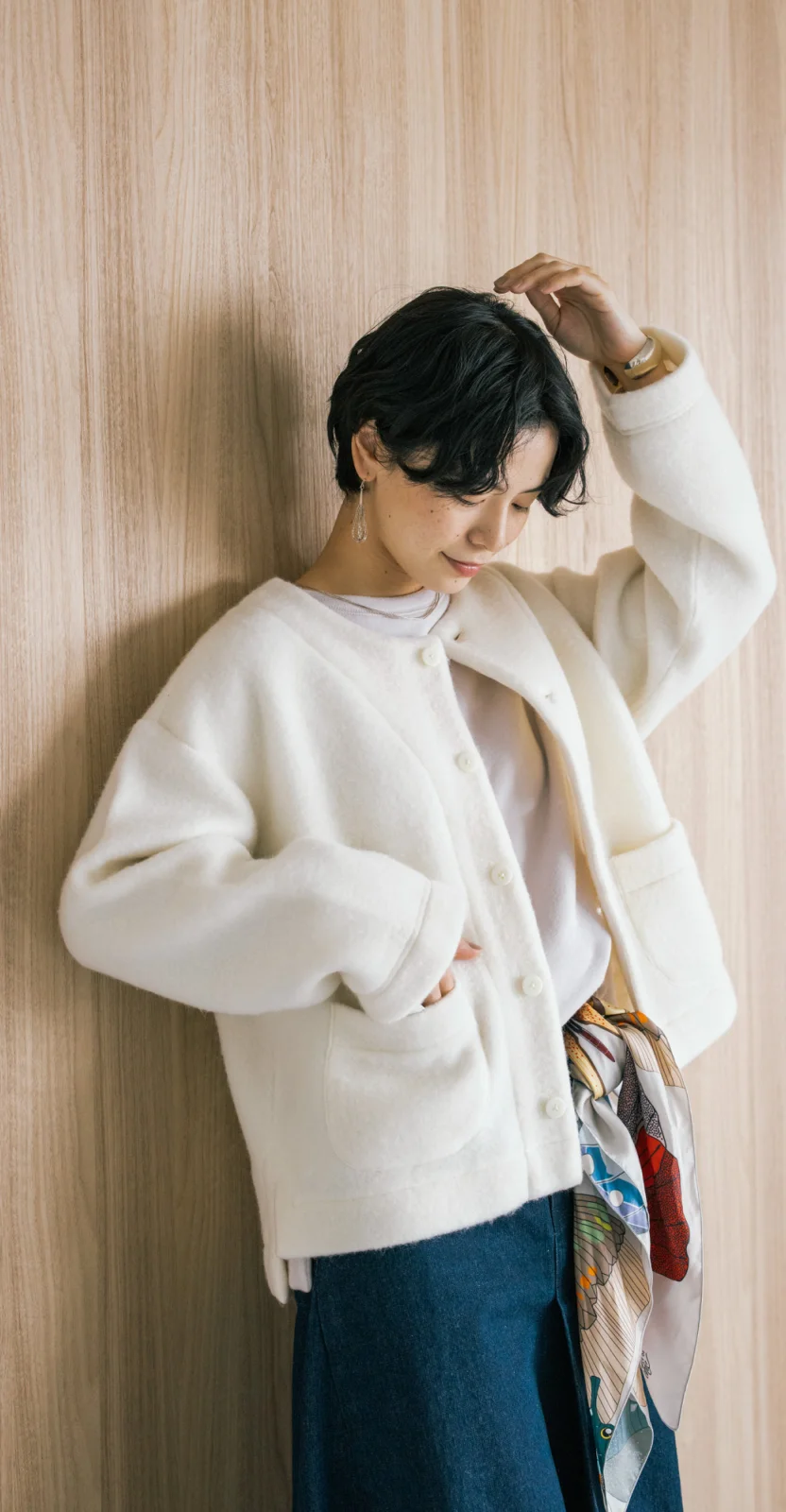 〈O2〉Double Face Cardigan (Milky White) ¥17,600