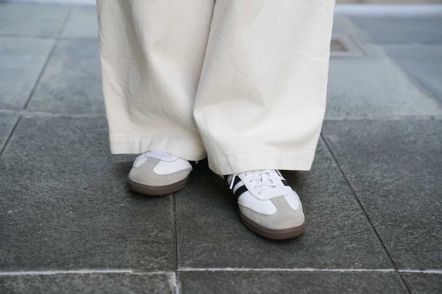 宇和川 カジュアルにおでかけするときのイメージで コーディネートをつくってみました。 古着のボーダーカットソーを取り入れて、 ボリュームのある白いパンツと 最近お気に入りのアディダス「サンバ」を足元に。