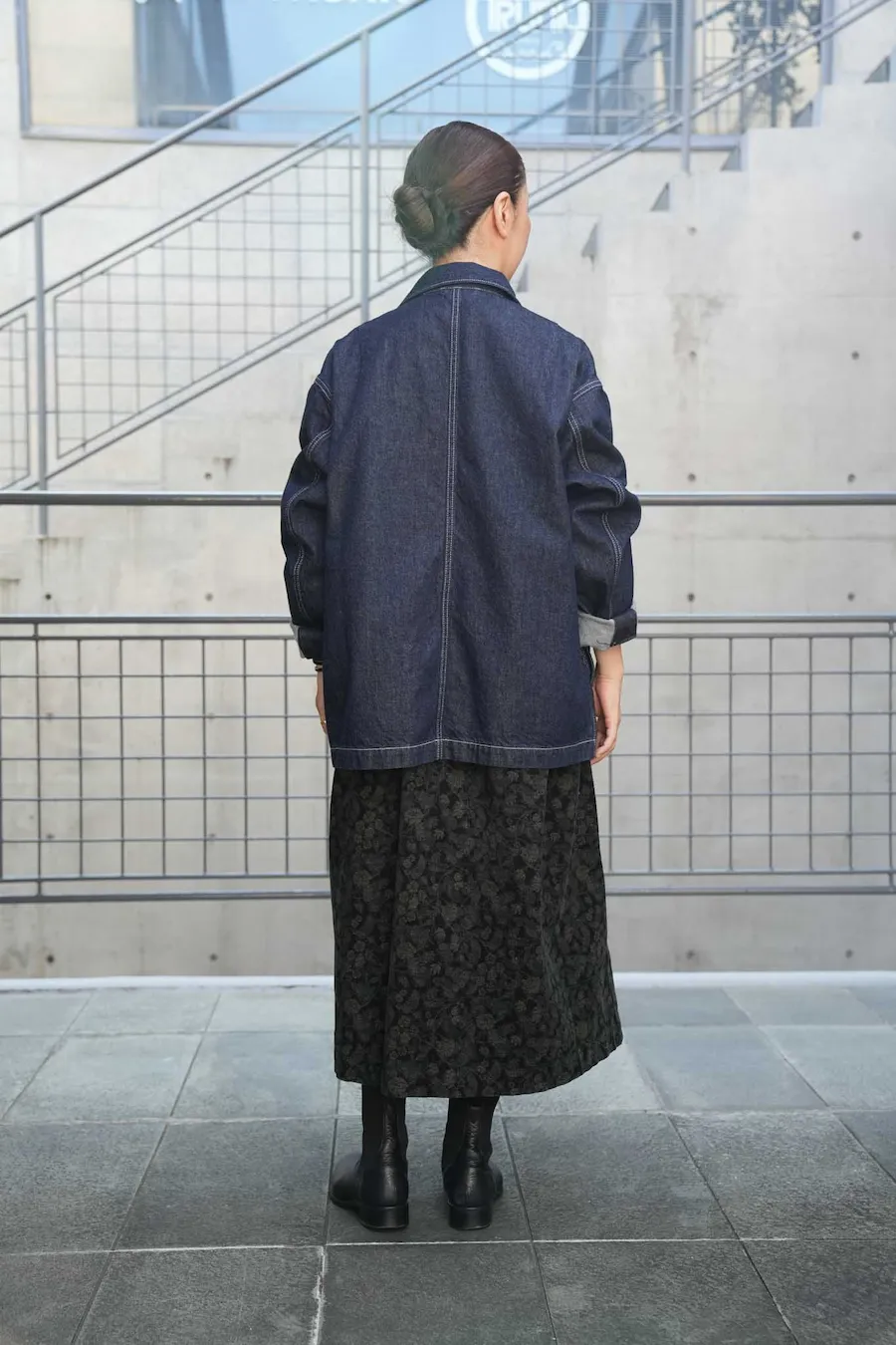 宇和川 メンズのデニムジャケットも着てみました。 GRANDMA MAMA DAUGHTERのコーデュロイの ワンピースに合わせましたがどうでしょう? ワンピースがフェミニンで甘い分、 逆のテイストを加える意味でも、 ジャケットがきりっと引き締めてくれますね。 メンズサイズを女性が着ると ちょっとハーフコートのような感じになって、 ロングワンピースとのバランスもいい感じです。 肩が落ちて、リラックス感も生まれます。