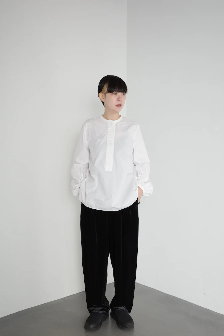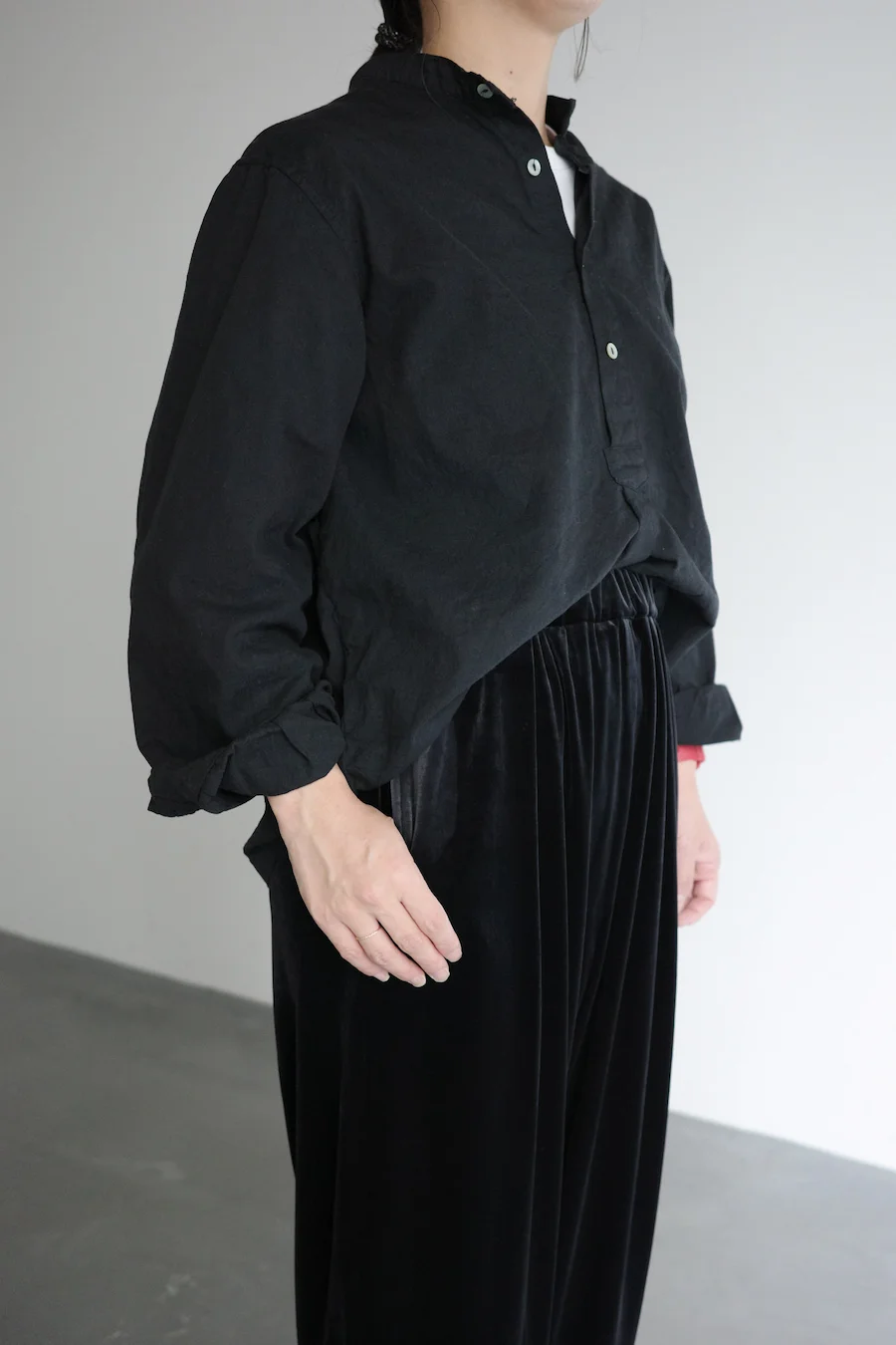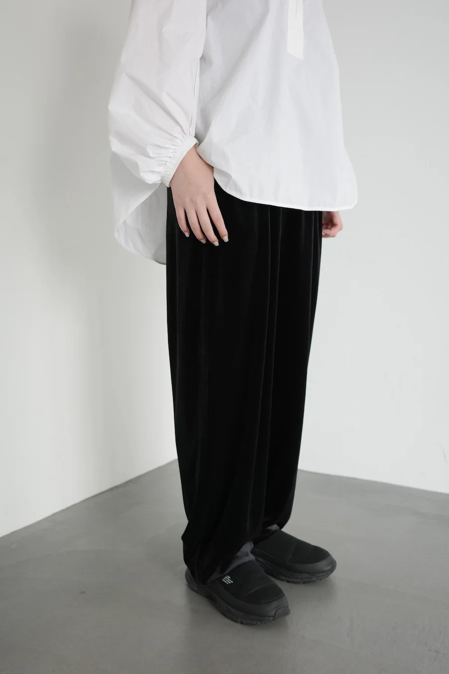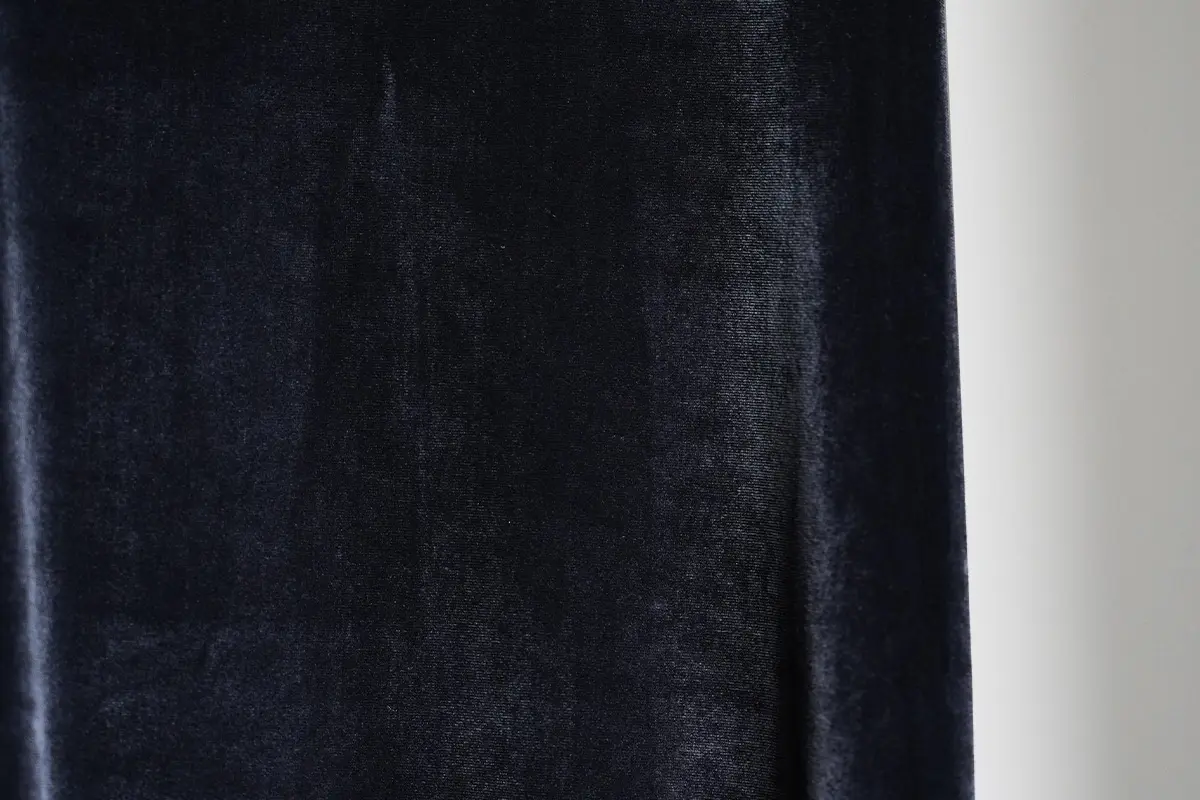 ―― らくちんな穿き心地だけど、それでいてかっこよく、 上品に見える冬のパンツがあったらいいなって ずっと考えていました。 そこで思いついたのがベロア素材。 ベロアなら、落ち感やドレープがきれいに出て、 きっとすてきになるんじゃないかと思って 宇和川さんに相談させてもらいました。