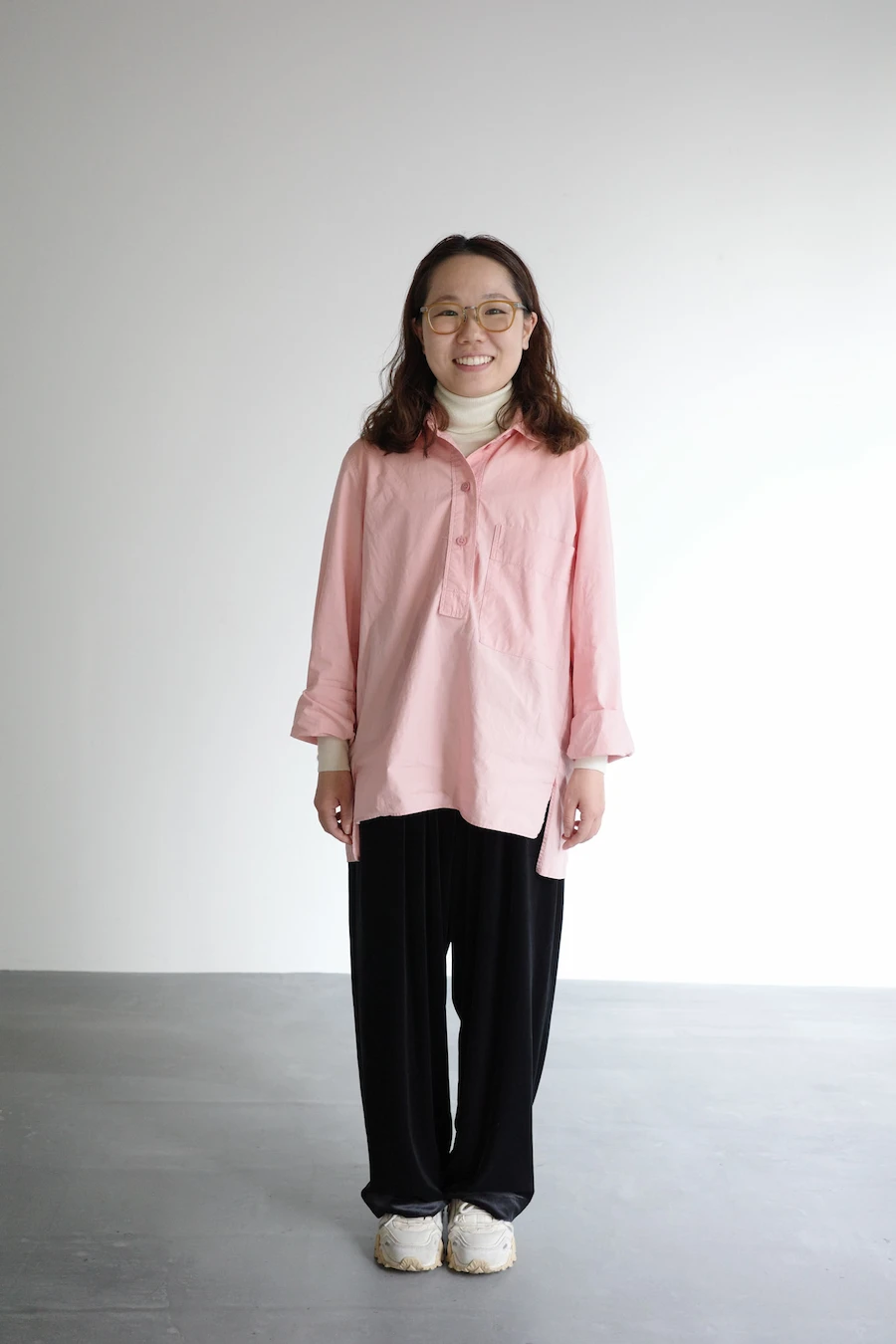 宇和川 この素材だからイージータイプも合ったんだと思います。 コットンだったりすると 部屋着っぽくも見えてしまいますからね。