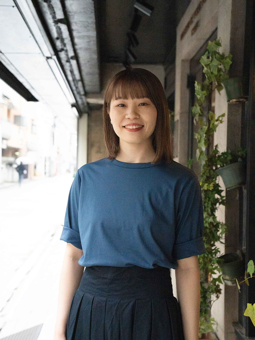 Tシャツの青の色味がとても上品なので、