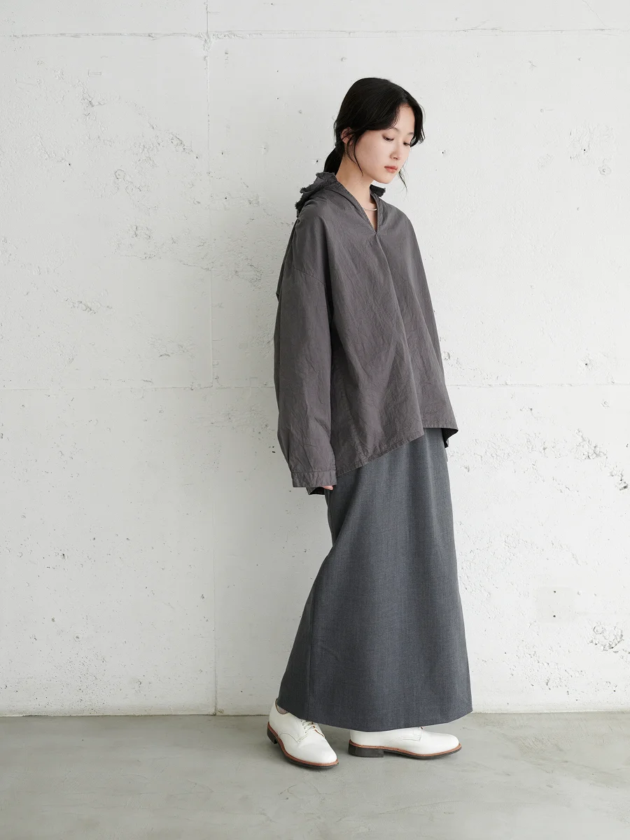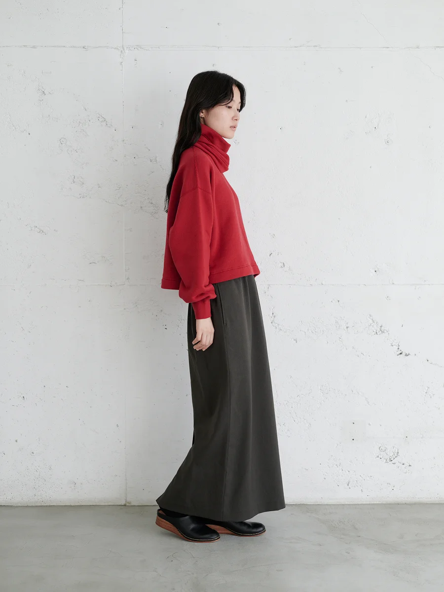 今年は、その人気に応えて、定番のブラックに加えて、 新色スチールグレーとテラコッタを追加。 さらに、パンツと同じく、 快適さと上品さを兼ね備えたスカートも制作しました。 どちらのデザインも手がけてくださったのは、 「GRANDMA MAMA DAUGHTER」のデザイナー・ 宇和川 恵美子さんと、「KATO’」創設デザイナーの 加藤 博さんのおふたりです。 自信をもって「コンフォートドレス」と冠した パンツとスカート、 どちらも〈O2〉の秋冬の新定番ボトムスとして、 きっと毎日の装いを支えてくれるはずです。
