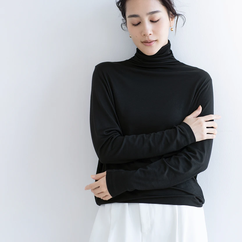 ─ 次は、メリノウールのハイネックトップ。