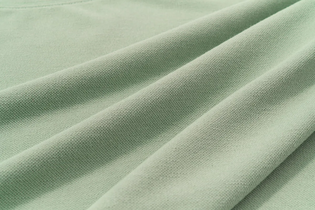末永 鹿の子は生地に陰影がつくから、 明るい色でもちょっと立体的になって ニュアンスがうまれるんですね。 今回選んだ色のうちのひとつ、テラコッタも ちょっとマイルドになるというか、やさしい色合いに。 アイスグリーンも本来なら若々しいさわやかな色ですが、 着る人の肌になじむというか。