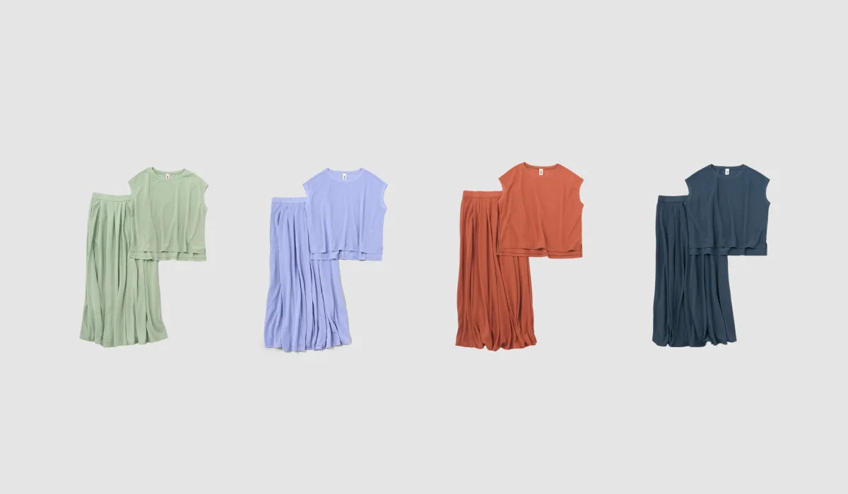 ―― ツーピースがはじめて登場したのが、 ちょうど5年前の2020年。 鹿の子編みのツーピースはたいへんご好評いただいて、 翌年も色を変えてお届けしました。 2023年にはあたらしい生地で、 デザインも変えて発売しました。