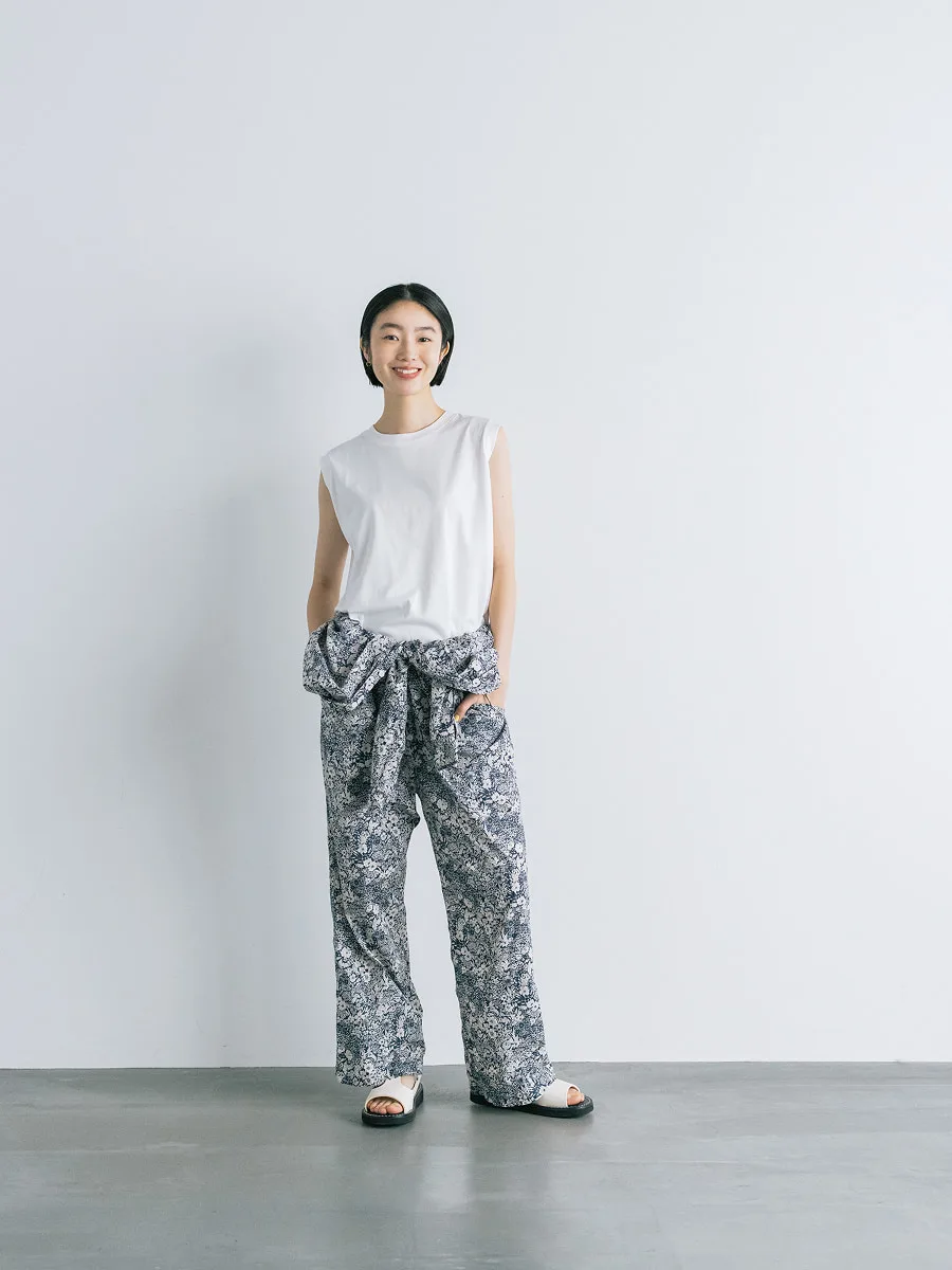 宇和川 Tシャツももちろん重宝しますが、 真夏に一番涼しく感じられる服装って、 ノースリーブかタンクトップを着て、 その上に襟元が開く薄手のシャツを はおるのがいいと思うんです。