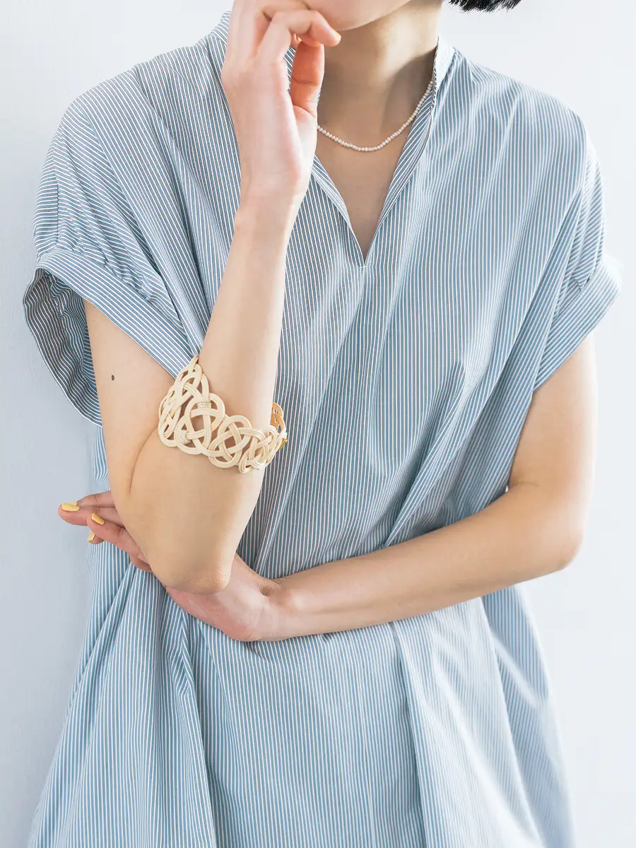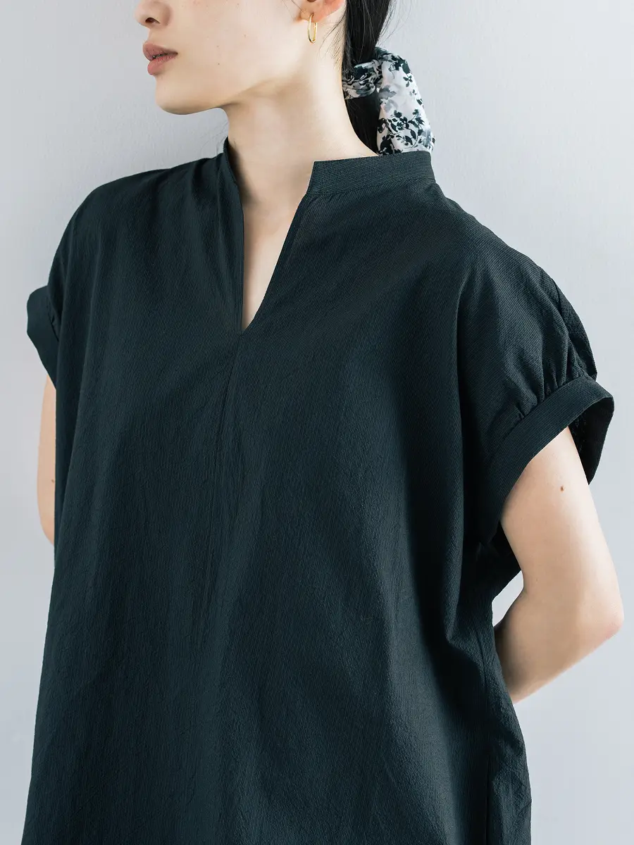 ―― 着ると体に沿わなくて、 風がふわっと抜けるようなシルエットです。 襟元もいやらしく見えない絶妙なあき加減で、 誰もが抵抗なく着ていただけそうだと思いました。